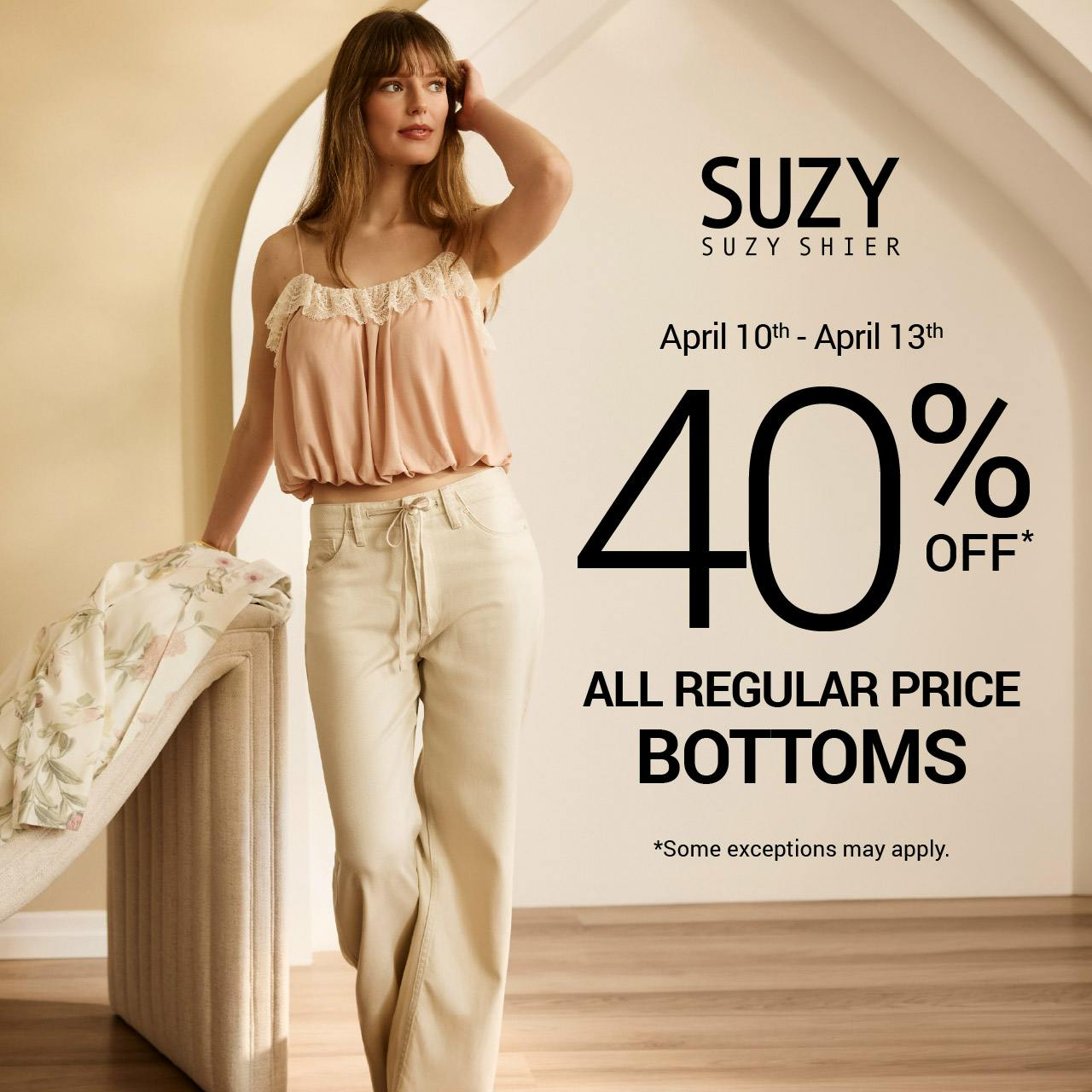New season, new staples. Pants to wear on repeat, now 40% off*.